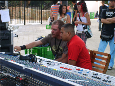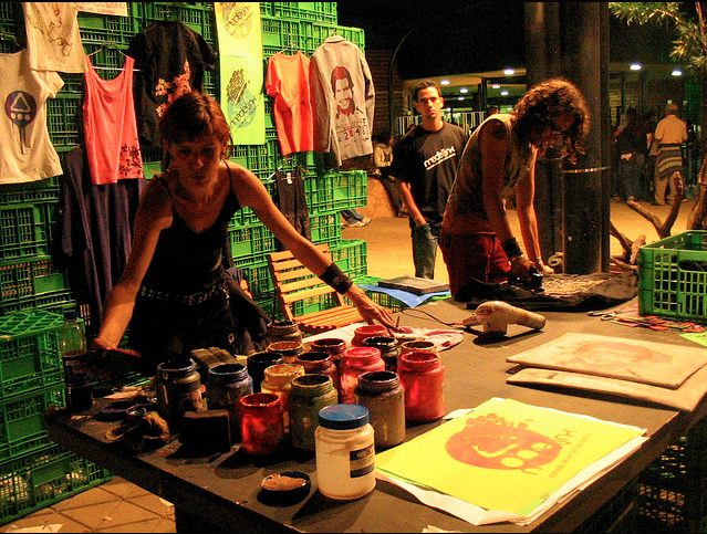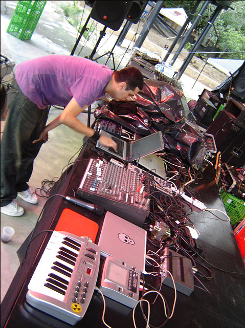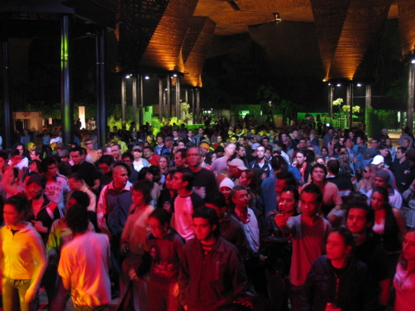 Otro descubrimiento, repito que deben leerlo en clave de una absoluta desconocedora, fue encontrar en un festival de este género grupos que se alejan de la típica música que he escuchado como electrónica y se acercan a sonidos latinos a los que estoy más acostumbrada. Arepaz inmigrants y Kafeina (este grupo me deparaba otra sorpresa: se identifican en su página web de forma clara con Libre Cultura aunque solo vi licencias Creative Commons en el blog y la promesa de que pronto habrá descargas, habrá que esperar para ver cómo entienden ellos la Libre Cultura) son un buen ejemplo de lo que les digo y, al menos del rato que estuve, este tipo de grupos parecen ser los que más entusiasmo consiguen levantar (¿o será que precisamente el alcance del festival que era más allá de la música hizo que el público se ampliara y de esta forma esta opción fuera más acogida?). En todo caso… interesante.