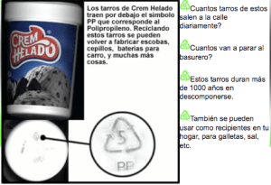 b) En ese recipiente pueden ir todos los derivados del petróleo, incluido el icopor. Notar que varias bandejas que parecen de icopor y suelen estar con las frutas que empacan en los supermercados, tienen un símbolo de reciclable. Otras no lo tienen. Idealmente se debe evitar comprar las frutas cuando vienen empacadas, tómese el tiempo de escogerlas y evitar la bolsa de plástico.