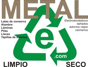 a) Los metales son: latas de atún, alambre, láminas, papel aluminio, tapas de gaseosa, latas de gaseosa o cerveza. Se deben separar también en un recipiente a parte, LIMPIOS Y SECOS.