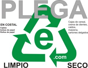 El recipiente para el papel, cartón, todo lo que es celulosa, periódicos, cajas de cereal, etc… debe estar igualmente LIMPIO Y SECO.
