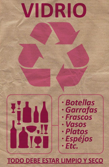 En cada cuarto del Shut , habrá también un recipiente para este material si usted decide separarlo de los otros teniendo un recipiente en su casa o poniéndo toda botella y todo frasco a parte LIMPIO y SECO para depositar ahí.