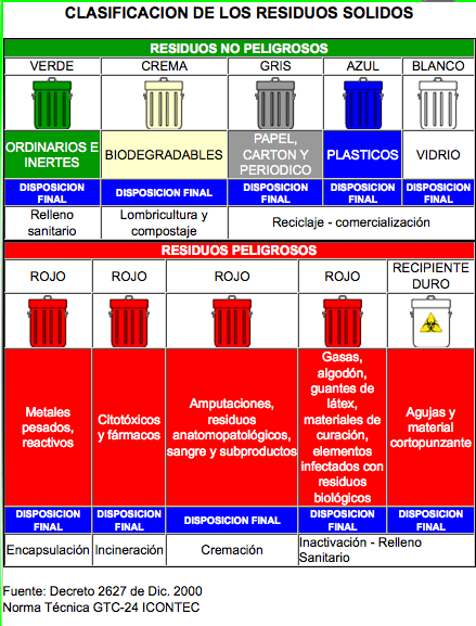 Clasificación de los residuos sólidos.