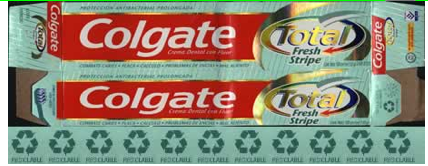 Sinembargo el tubo de crema de dientes es diferente. Es hecho de plástico pero no es reciclable al parecer, pues no tiene ningún símbolo en su empaque que lo afirme.