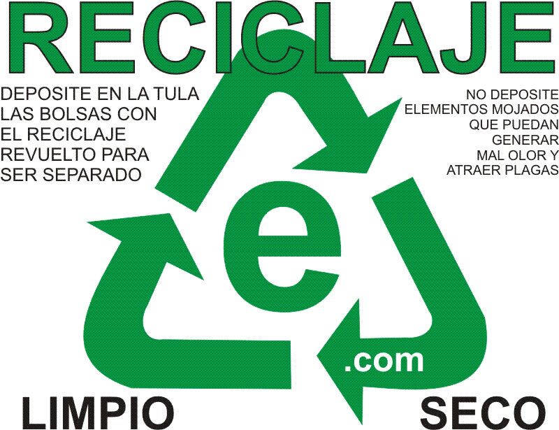 Con cuatro canecas aquí hay un ejemplo del plan de RECICLAJE de EL PORTÓN DEL POBLADO. Todo el circuito con fotos y texto. Resalto el ejemplo de vincular a recicladores dentro del proceso. Una pareja de recicladores a los que les mejoran sus condiciones de trabajo, un trabajo que siempre han hecho muchas personas en la calle y que puede ser más cómodo dando estabilidad laboral.