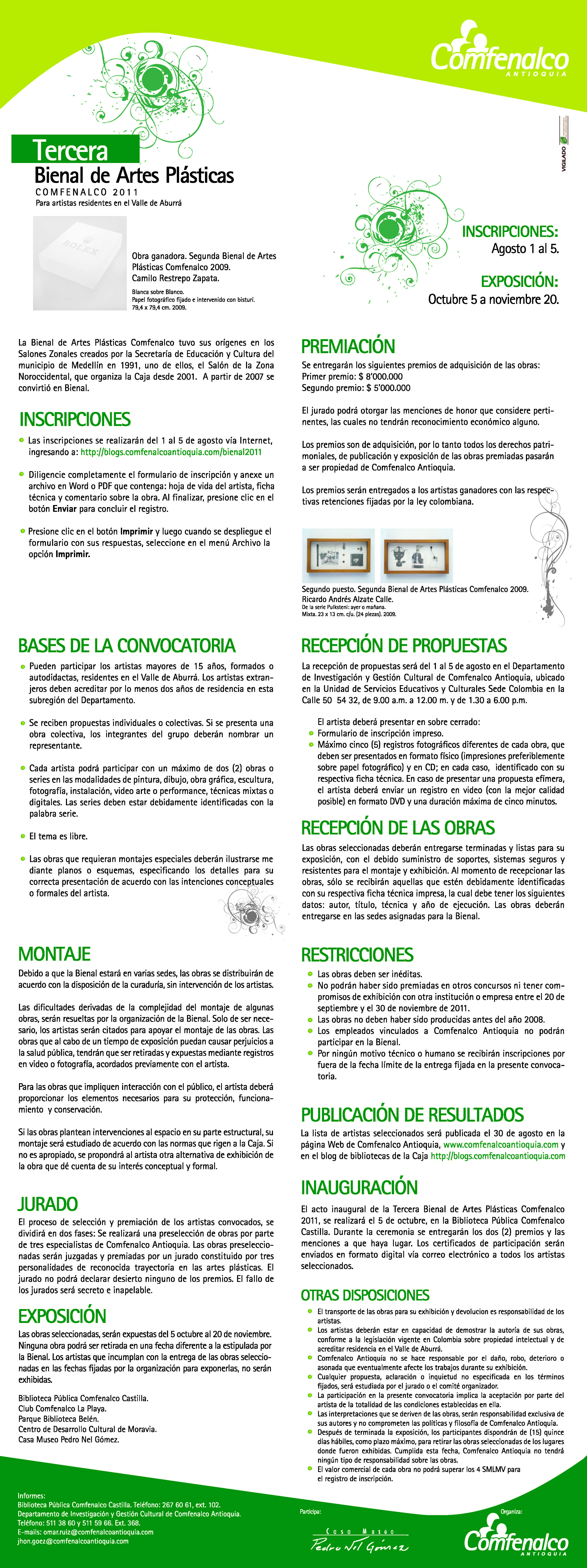 Mi nombre es Jhon Fredy Goez Zapata, soy compañero de Omar Ruiz en Comfenalco y estoy junto con el en la organización de la Tercera Bienal de Artes Plásticas Comfenalco 2011.