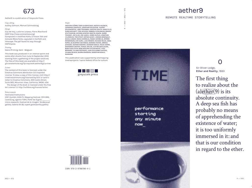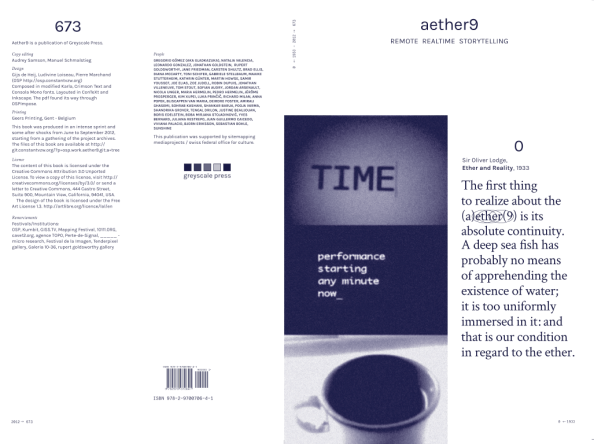 aether9 – REMOTE REALTIME STORYTELLING is a print publication based on the archives of the aether9 project.