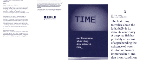 Aether9 is a collaborative adventure exploring the danger zones of networked audio-visual live performance. This catalogue of their work was generated from the collection of images, mailing-list and chat interactions that developed between 2007 – 2010. The process, behind-the-scenes discussions and perils of networked communication, technical pitfalls, and script development, can thus be followed from performance to performance.