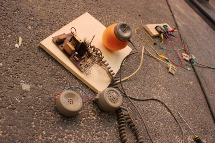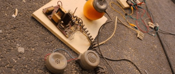 Les deux téléphones on les relie l’un avec l’autre alimentés avec deux piles carrés de 9 volts chaqu’une.