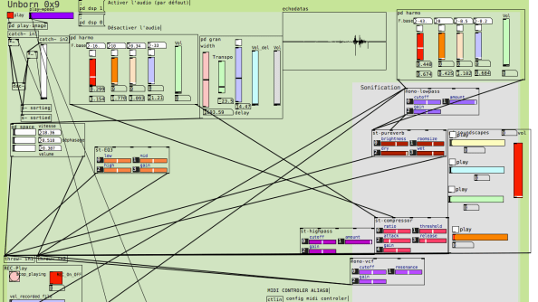 La performance Unborn0x9 fait intervenir des bio-hackers, performeuses et agitatrices politiques sur un environnement sonore construit par des artistes sonores et dérivé de la conversion vers l’audible de fréquences ultrasoniques issues de l’échographie. Ecrite suivant les différentes typologies contemporaines de maternité, la performance donne à voir l’envers du décor de la technologie échographique et questionne le caractère à la fois non-invasif des fréquences ultrasoniques et invasif de la vision de l’intérieur du corps de la femme par une technologie d’origine militaire. Il s’agit d’une phase de développement d’une performance de hacking dirigée par l’artiste Shu Lea Cheang et produite par le medialab Makery en collaboration avec la Labomedia d’Orléans et le fablab echOpen de l’Hôtel-Dieu à Paris autour du développement d’un écho-stéthoscope open source à bas coût.