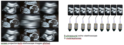 - l’écriture et la conception d’une performance audio-visuelle basée sur les données capturées de l’échographie ‘Unborn 0x9’