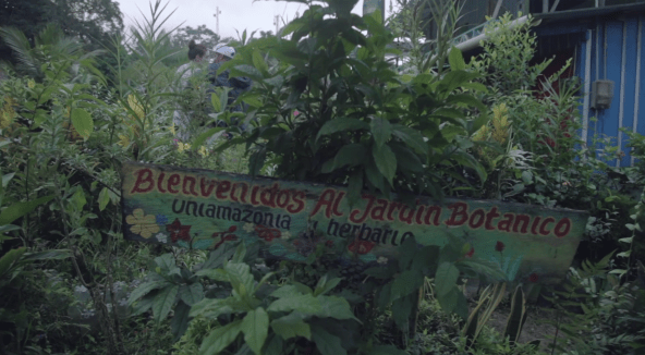 El maravilloso jardín botánico de plantas medicinales de la sabedora en curación con plantas que Pachita ha cuidadosamente cultivado al frente de su casa en Puerto Nariño, Amazonas.