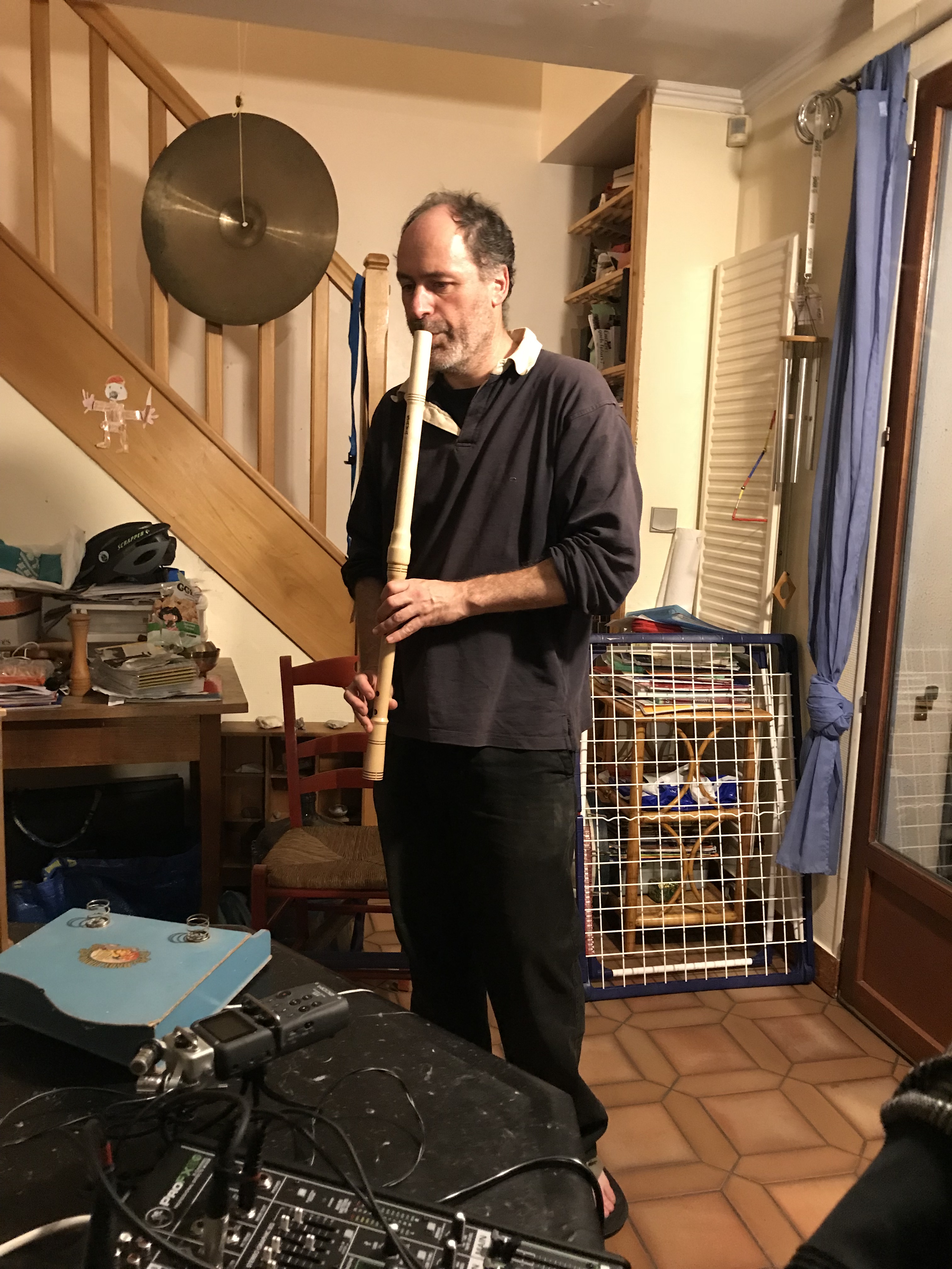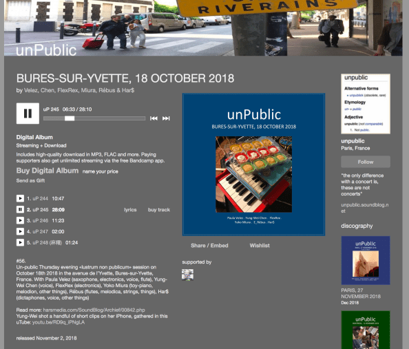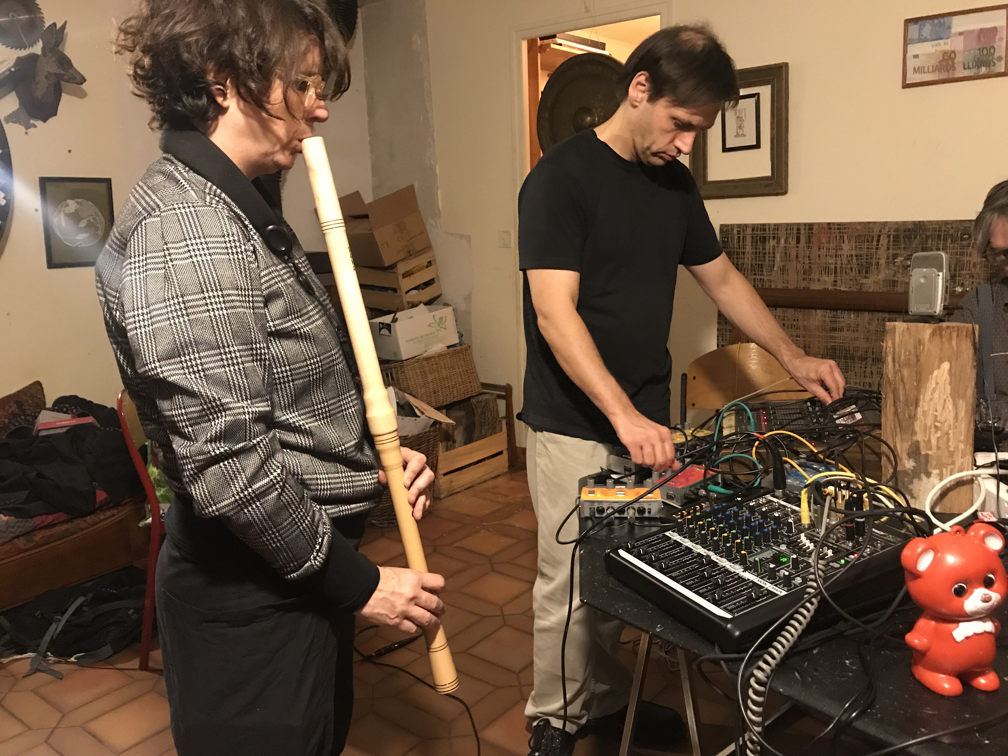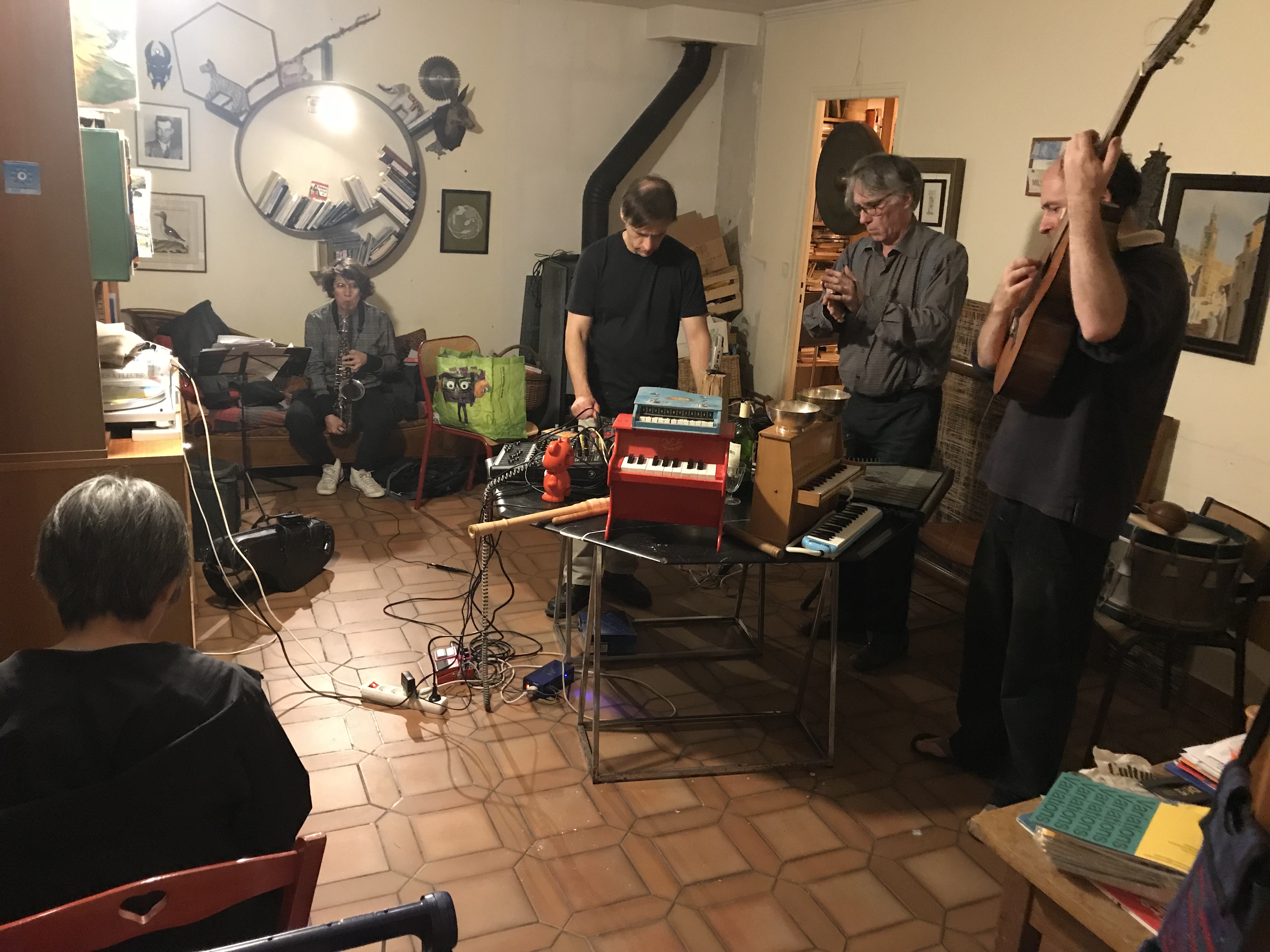 Un-public Thursday evening «lustrum non publicum» session on October 18th 2018 in the avenue de l’Yvette, Bures-sur-Yvette, France. With Paula Velez (saxophone, electronics, voice, flute), Yung-Wei Chen (voice), FlexRex (electronics), Yoko Miura (toy-piano, melodion, other things), Rébus (flutes, melodica, strings, things), Har$ (dictaphones, voice, other things)Read more: harsmedia.com/SoundBlog/Archief/00842.php