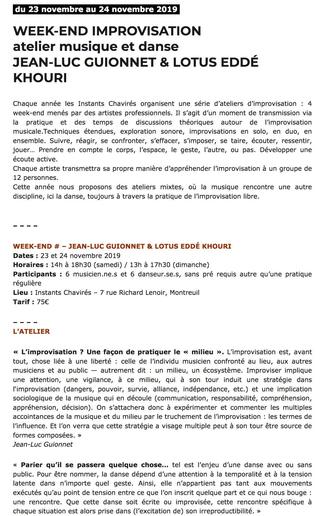 C’est encore un des très bons ateliers organisées par Les Instants Chavirés.